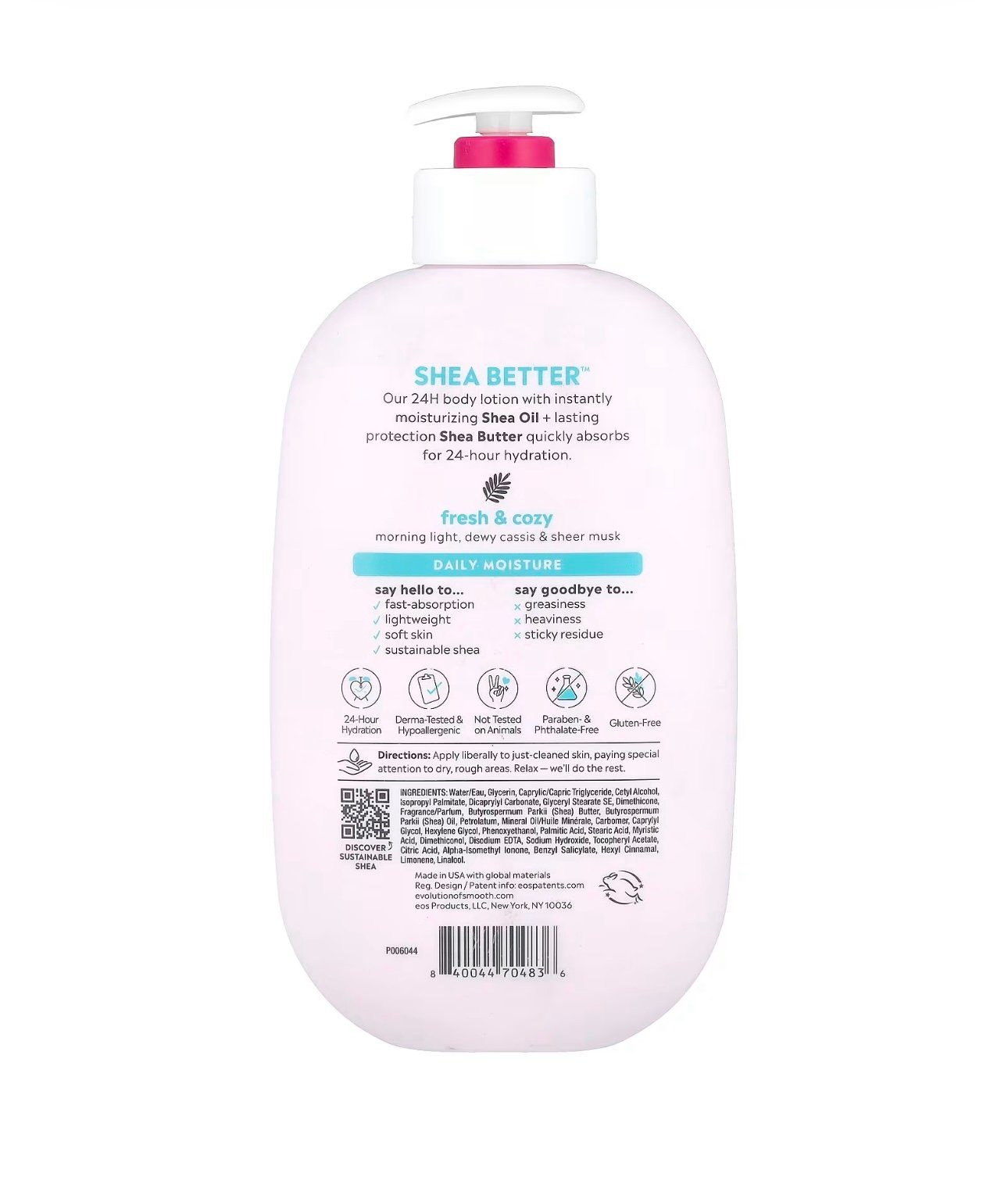 دهان الجسم 24 ساعة مع زيت الشيا المرطب على الفور + حماية دائمة بزبدة الشيا تُمتص بسرعة لترطيب يدوم 24 ساعة.