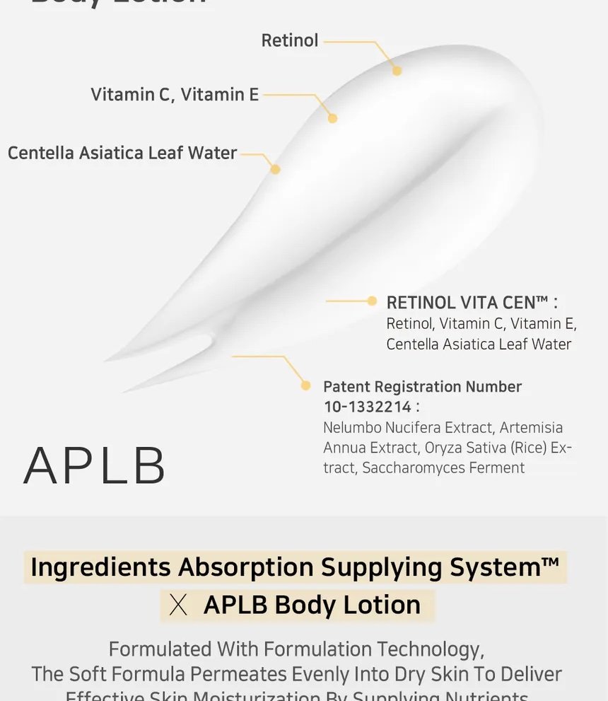 مملوء ب RETINOL VITA CEN™ (يحتوي على الريتينول وفيتامين C وفيتامين E ومستخلص سنتيلا أسياتيكا)، يوفر غسول الجسم هذا تأثيرات تفتيح ومهدئة ومضادة للشيخوخة. يمتص الملمس الخفيف بسرعة في الجلد دون ترك أي بقايا لزجة. خالية من تسعة مكونات يحتمل أن تكون مزعجة، التركيبة مناسبة لجميع أنواع البشرة بما في ذلك البشرة الحساسة.